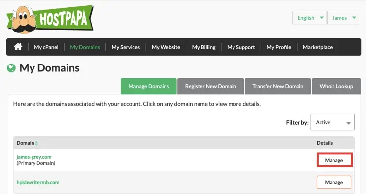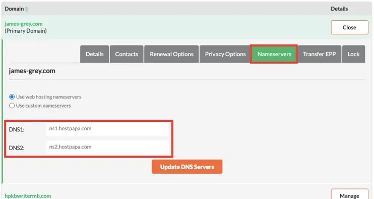 4) Click the Nameservers tab to see your HostPapa nameservers.
